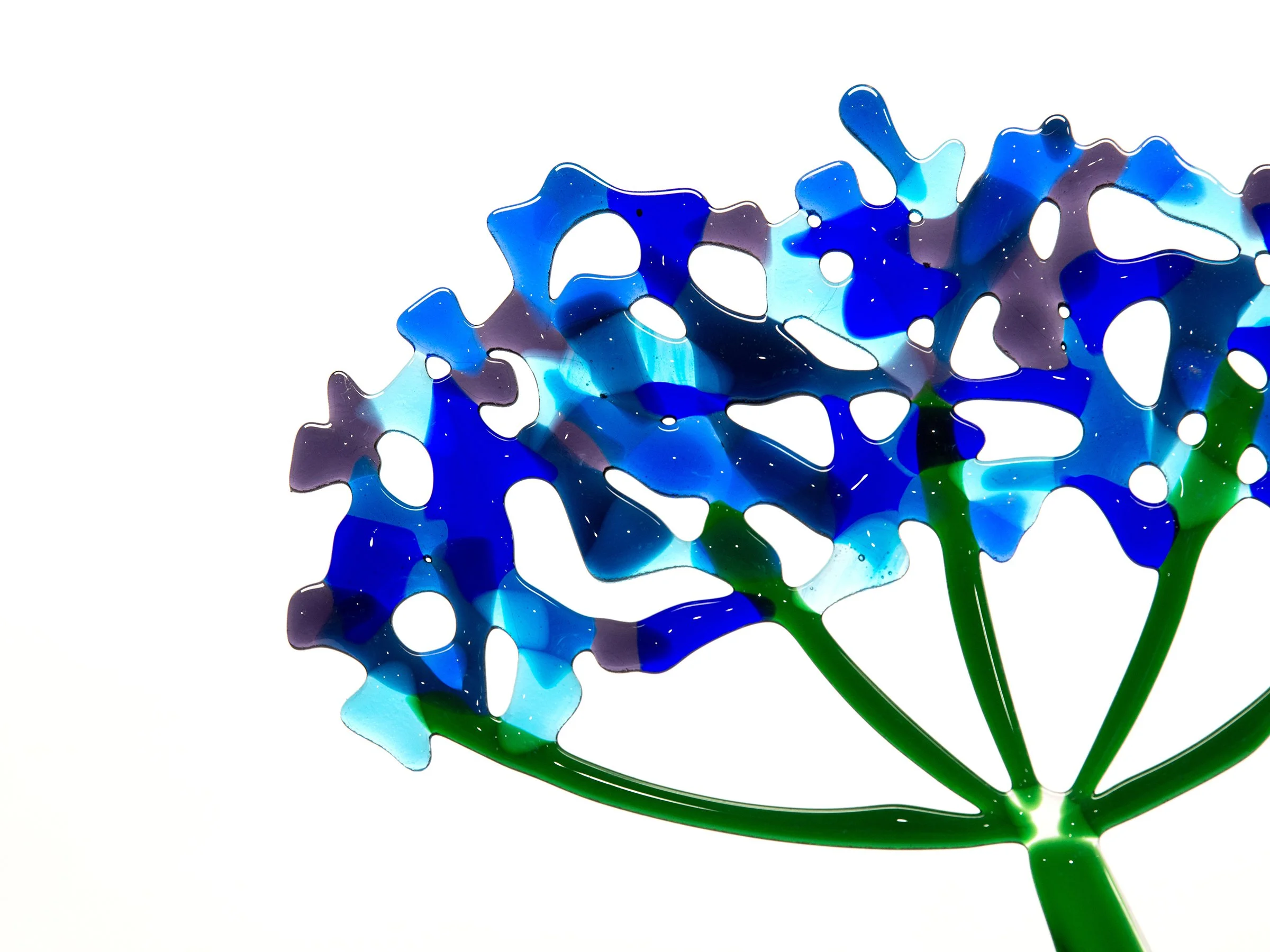It seemed obvious when given the title 'Nature in Glass' to make flowers, but I am interested in the energy aspect of the title. Everything is energy and energy doesn't die, it morphs into something else. I love the fact that the sand becomes the glass and that it transitions under heat into handmade glass, blossoming into life as art through the flowers. I also love the fact that sand can transform the glass by sandblasting it to change its appearance to create beauty. One of nature's very own wonders.